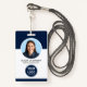 Personnalisez cette carte d'identité marine minimaliste avec votre photo et nom d'employé, titre de poste, informations commerciales, logo et code QR. Montré ici comme un "consultant en design" Photo ID Badge, ce design moderne bleu marine et blanc peut être entièrement customisé pour toute entreprise. Il vous suffit de modifier les champs texte, photo, logo et code QR pour créer votre propre badge d'identification d'entreprise personnalisé. Ce badge simple et élégant est parfait pour toutes les professions, y compris les graphistes, les architectes d'intérieur, les coiffeurs, les coiffeurs, les médecins et les hôpitaux.