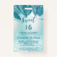 laissez-passer VIP. Tropical feuille bleu parties scintillant sombre script Sweet 16 VIP design.