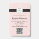 Blush pink and black employee badge with modern typography and elegant script includes a photo, qr code and add your own logo. Quickly send clients to reviews pages, price lists or landing pages with a qr code on your badges. Message the designer for further customization.