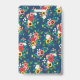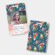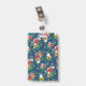 Charmante badge vertical pour décorateur d'intérieur, styliste événementiel, maquilleur ou similaire, avec un motif de fleurs dessinées à la main dans des couleurs vives contre un arrière - plan bleu et une texture d'aquarelle rose vif. Personnalisez avec votre nom, titre et photo.