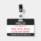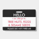 Bonjour mon nom est allergique à l'insigne fait sur commande d'allergie d'enfants dans blanc et rouge noirs. Attache par l'intermédiaire d'une lanière, d'une agrafe en métal, ou d'une agrafe escamotable dans un cartable, kit de médecine ou pour qu'un enfant porte. Customisez avec vos allergies, information de contact ou instructions de secours. Ajoutez l'information importante sur le dos. www.LilAllergyAdvocates.com