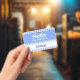 Bonjour Mon nom est - en vichy badge bleu et blanc