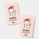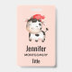 Un nom avec une adorable image d'une vache tachetée en noir et blanc portant un casquette rouge.