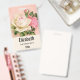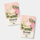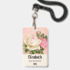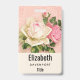 badge de nom personnalisé avec un bouquet de rose fleuri aux fleurs blanches et roses. Arrière - plan est rose avec un motif fleuri. Joli et élégant design.