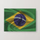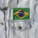 Bouton avec le drapeau du Brésil dans un style de tissu ondulé. Ce design présente les couleurs du drapeau brésilien et le design avec un bel effet texturé matériau de tissage. Ce drapeau design est une excellente façon de vous montrer fier d'être du Brésil.