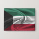 Bouton avec le drapeau du Koweït dans un style de tissu ondulé. Ce design présente les couleurs du drapeau koweïtien et un design avec un bel effet texturé de matériau de tissage. Ce drapeau design est une excellente façon de montrer que vous êtes fier d'être du Koweït.