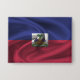 Bouton avec le drapeau d'Haïti en tissu ondulé design. Ce design présente les couleurs du drapeau haïtien et le design avec un bel effet texturé matériau de tissage. Ce drapeau est une excellente façon de vous montrer fier d'être d'Haïti.