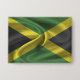 Bouton avec le drapeau de la Jamaïque dans un style de tissu ondulé. Ce design présente les couleurs du drapeau jamaïcain et le design avec un bel effet texturé de matériau de tissage. Ce drapeau design est une excellente façon de vous montrer fier d'être jamaïcain.