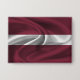 Bouton avec le drapeau de la Lettonie dans un style de tissu ondulé. Ce design présente les couleurs du drapeau letton et le design avec un bel effet texturé de matériau de tissage. Ce design de drapeau est une excellente façon de vous montrer fier d'être de Lettonie.