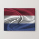 Bouton avec le drapeau de Pays-Bas dans un style de tissu ondulé. Ce design présente les couleurs du drapeau hollandais et le design avec un bel effet texturé de matériau de tissage. Ce design de drapeau est une excellente façon de vous montrer fier d'être de Pays-Bas.