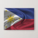 Bouton avec le drapeau des Philippines dans un style de tissu ondulé. Ce design présente les couleurs du drapeau philippin et le design avec un bel effet texturé matériau de tissage. Ce drapeau design est une excellente façon de vous montrer fier d'être originaire des Philippines.