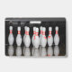 Un badge de nom avec un rack de broches de quilles. Idéal pour les membres du personnel de bowling.