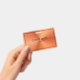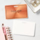 Orange métallique brillant, impression texture en acier inoxydable avec typographie noire personnalisable et cadre simple. Design élégant et moderne.