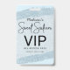 Vos invités aimeront recevoir ces invitations personnalisées de badge de laissez-passer VIP bleu pâle 16. Le design présente une conception de brosse à parties scintillant fausse avec une police manuscrite moderne. Personnalisez facilement ce modèle pour votre fête d'anniversaire de sweet sixteen. Les dessins sont des illustrations et des graphiques imprimés à plat - PAS DE PARTIES SCINTILLANT RÉELLE.
