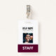 Badge Burgundy Nom de l'employé Photo Étiquette du perso