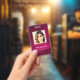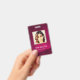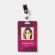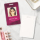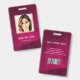 Carte d'identité d'entreprise photo moderne avec code barre sur un arrière - plan bordeaux. Des informations supplémentaires peuvent être ajoutées à l'arrière de ce badge d'identification professionnelle