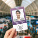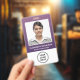 Badge Business Logo QR Code Barcode Purple Photo ID