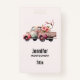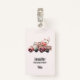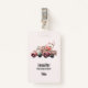 Nom badge avec une jolie illustration d'aquarelle blanche. Couleurs rose et rose. Camion ramassage avec un dossier/lit en bois ancien avec fleurs de cerisier.