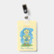 Un badge de passe de la bibliothèque jaune mignon conçu pour l'école primaire, avec un petit caneton de dessin animé aquarelle adorable tenant un livre sur le devant et des empreintes de pattes de canard orange sur le dos. Utilisez le champ de modèle pour le personnaliser avec le nom de l'enseignant. Choisissez le type de fixation que vous souhaitez (aucun, clip métallique ou lanière).