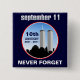 Le bouton patriotique de souvenir en l'honneur de ceux qui a perdu leurs vies le 11 septembre en Th attaque sur le World Trade Center à New York. Belle et sombre description des Tours jumelles de WTC avec la silhouette de l'horizon de NYC. 10ème conception d'anniversaire d'édition limitée -- 9/11 cadeau commémoratif et de souvenir, T-shirts, habillement, boutons, casquettes, magnet, et souvenirs et souvenirs commémoratifs.