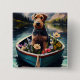 Badge Carré 5 Cm Airedale Dog on a Paddle : Une aventure Pittoresqu