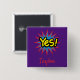Bouton d'art cool et tendance, cet article présente "Yes" en jaune en noir avec un symbole étoile rouge et bleu sur un arrière - plan violet. Votre nom est écrit en caractères rouges amusants. Clipart : AnneIllustration https://www.etsy.com/shop/AnneIllustration