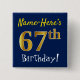 Badge Carré 5 Cm Bleu, Faux Or 67ème Anniversaire, Avec Nom Personn