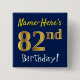 Badge Carré 5 Cm Bleu, Faux Or 82e Anniversaire, Avec Nom Personnal