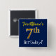 Ce simple design de bouton carré comporte un message comme "7e anniversaire de FirstName !", avec le "7e" ayant un look de couleur fausse/imitation or, sur un arrière - plan de couleur bleue. Le nom peut être customisé. Des boutons comme ceux-ci pourraient être portés par les invités à une fête d'anniversaire pour quelqu'un qui célèbre son septième anniversaire, où la fête se déroule dans un grand espace avec beaucoup d'autres personnes présentes (comme un parc municipal ou un parc à thème). [~Z0000164]