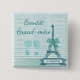 Bientôt Grand-mère Baby shower Button grand-mère à être, avec turquoise arrière - plan Tour Eiffel avec petites empreintes de bébé et arc