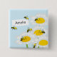 Abeille sur le bouton Carré de fleurs. Customisez facilement le bouton avec votre nom ou votre propre texte.