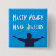 Bouton Carré bleu avec une belle silhouette d'Hillary avec ses bras ouverts vers les mots "Les femmes malveillantes font l'histoire." Un must pour n'importe quelle femme et surtout pour n'importe quel fan Hillary.