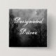 Un bouton de conducteur personnalisé avec un ciel d'Halloween éffrayant avec des arbres brumeux le long d'une route sombre hantée, corbeaux gothiques et une pleine lune nuageuse.