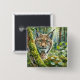 Badge Carré 5 Cm Bouton d'aquarelle Lynx dans la forêt verte luxuri
