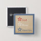 Simple Chic Stars Juillet 4th Button avec un arrière - plan en papier imitation texturé et un trio d'étoiles rouges, blanches et bleues. Ce bouton élégant est une excellente façon de montrer votre côté patriotique ! Le produit montre l'expression Dieu bénisse l'Amérique, mais peut être customisé avec votre propre texte à la place.