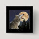 Badge Carré 5 Cm Bouton Howling Wolf & Moon Wildlife Art