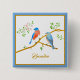 Badge Carré 5 Cm Bouton Nom du Carré Oiseaux bleus