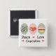 Badge Carré 5 Cm Bouton Peace Love Cupcakes