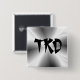 Le bouton TKD en argent Faux est amusant pour tout artiste martial de Taekwondo. L'image argentée à l'aspect métallique est numériquement créé art fractal abstrait avec les lettres TKD. Il fait une belle fête pour une fête d'anniversaire sur le thème des arts martiaux. Ce bouton d'épinglette d'arts martiaux personnalisés est une excellente idée cadeau pour un maître instructeur, entraîneur ou ami athlète dans le sport de Taekwondo.