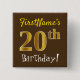 Badge Carré 5 Cm Brown, Faux Gold 20e anniversaire, avec nom person