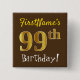 Badge Carré 5 Cm Brown, Faux Gold 99ème Anniversaire, Avec Nom Pers