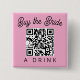 Buy the Bride a Drink QR Code button. This fun and interactive button is perfect for any bachelorette party or bachelorette weekend. The design features a prominent QR code that can link to a Venmo/Cash App for drinks! The phrase "Buy the Bride a Drink" is displayed in elegant script typography with a customizable QR code. The soft pink background adds a touch of sweetness to this modern and engaging accessory, making it a memorable addition to the bride-to-be's bachelorette party. Whether you are at a bar, sporting event or concert, this is sure to be a fun accessory to wear!