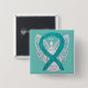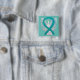 Badge Carré 5 Cm Cancer de l'ovaire Sensibilisation Turquoise Ruban