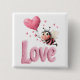 Badge Carré 5 Cm Cute Bee Fluffy Pink Love Heart Balloon