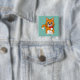 Badge Carré 5 Cm Cute Orange Blanc Chat Manger Rouge Pomme Carton