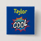 Bouton cool pop art conçu, cet article présente un "Cool" en noir en blanc avec une bulle de discours rouge, jaune et bleu sur un arrière - plan bleu. Votre nom est écrit dans une police jaune amusante. Clipart : AnneIllustration https://www.etsy.com/shop/AnneIllustration
