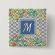 Badge Carré 5 Cm Élégant Orange Floral Chevron Chic Blue Monogram