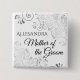 Identifiez les personnalités clés à votre baby shower, mariage ou dîner de répétition avec nos élégants boutons argentés en faux foil. Conçus pour coordonner avec notre gamme de mariage élégant en feuille d'argent, ce bouton présente une touche de faux foil argenté sur fond blanc avec un texte noir indiquant Mère du marié et un espace pour entrer son nom. Parfait comme un cadeau pour les membres du cortège de mariage.
