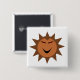 Ce bouton présente une bande dessinée d'un hérisson brun maléfique enroulé dans une boule avec des piqûres brunes pointues qui l'entourent. Il a des yeux rouges démoniaques et un sourire noir menaçant. Ce design simple séduira petits et grands.