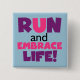 Si vous aimez courir, courir 5Ks, 10Ks, demi-marathons ou marathons, vous adorerez ce texte coloré en violet et rose qui lit Run and Embrace Life ! Cours et Embrassez des T-shirts, des tasses, des sacs, des cartes, des autocollants, des porte - clés, des mousepads, des coques iphone, des magnets et bien plus encore !